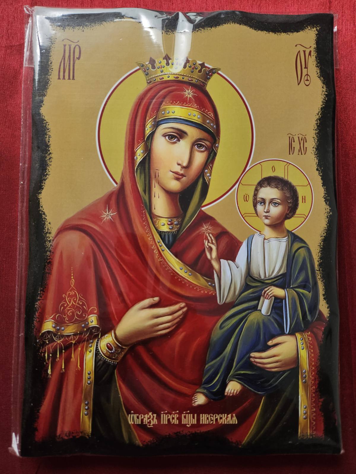 Икона за иконостас или проскинитарий „Света Богородица Иверска“, дърво, полиграфия, византийска техника на изработка, размер 50/70 см.