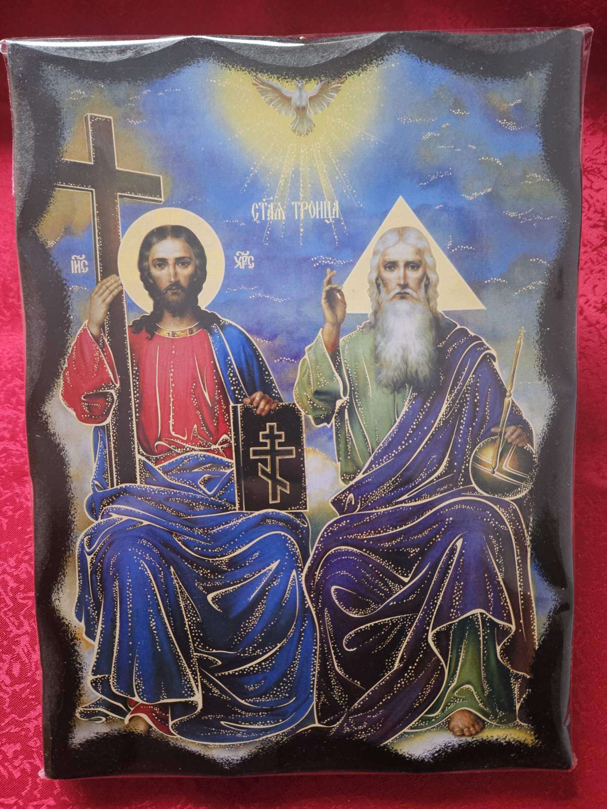 Икона за иконостас или проскинитарий „Света Троица Новозаветна“, дърво, полиграфия, византийска техника на изработка, размер 50/70 см.