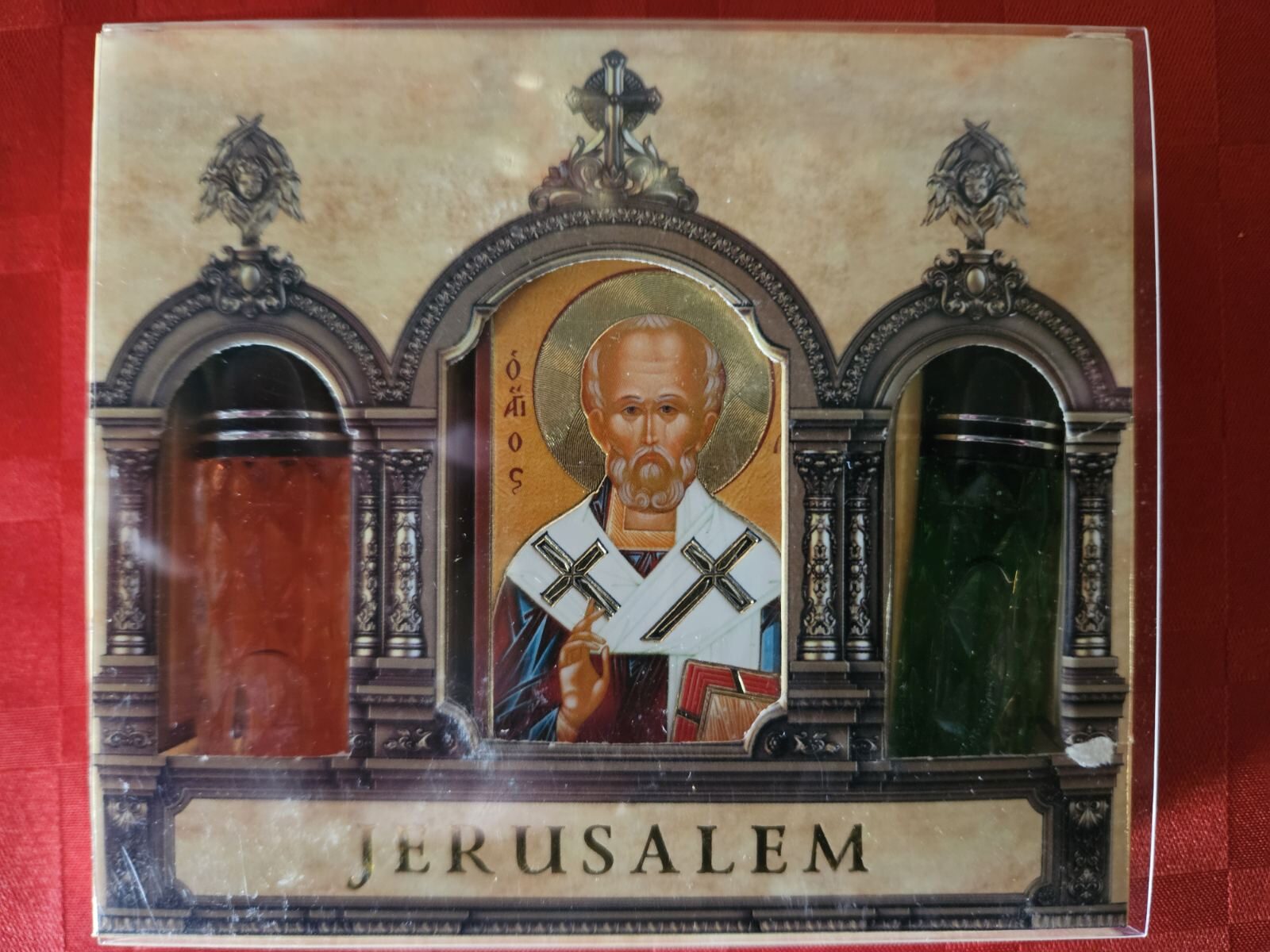 Осветено миро „Свети Николай Чудотворец“ икона + 2 броя миро осветено върху иконата му. Помага при тежки беди и несгоди, материално затруднение и благославя бизнеса.